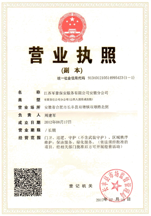 • 江蘇軍豪保安服務(wù)有限公司安徽分公司
